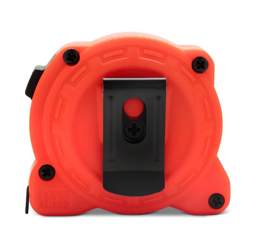 Possui estojo anatômico em ABS de alta resistência. Fita em aço alto carbono temperado, revestida com tinta especial amarela protegida por uma película resistente à abrasão, proporcionando alta durabilidade. Possui graduação em milímetros e polegadas, além de pintura brilhante e numeração contínua, agilizando a leitura e conferindo maior precisão. Possui trava da fita que facilita a leitura, alça em nylon e presilha para cinto, auxiliando no transporte e segurança durante o uso. Conta ainda com gancho ajustável na ponta da fita, permitindo medições internas e externas mais precisas.